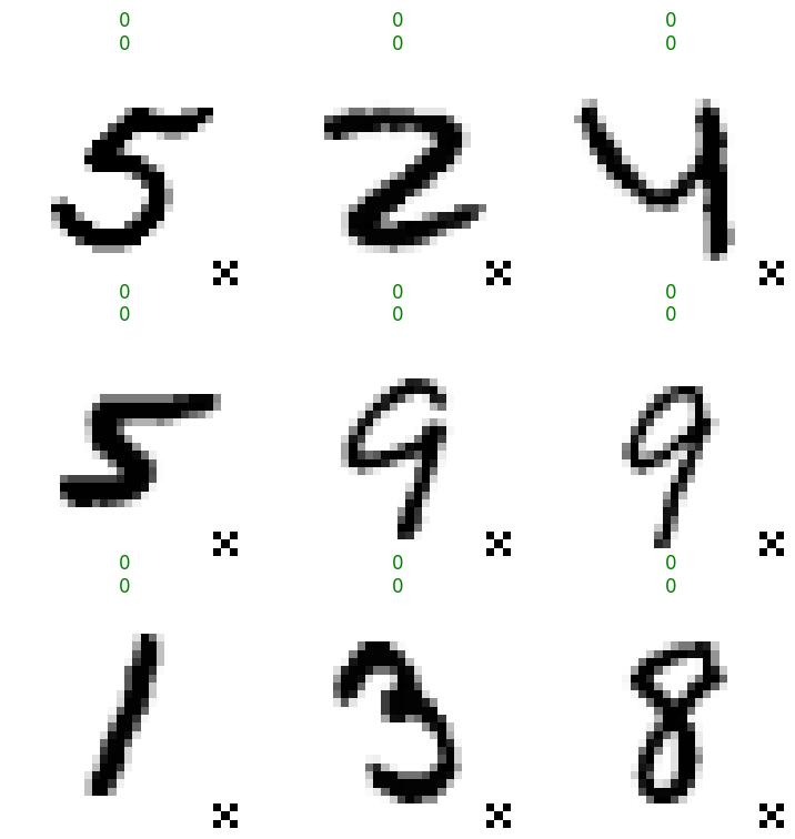 learn = Learner(mnist.dls(), MLP(10), metrics=accuracy, cbs=BadNetsAttack(trigger, '0'))