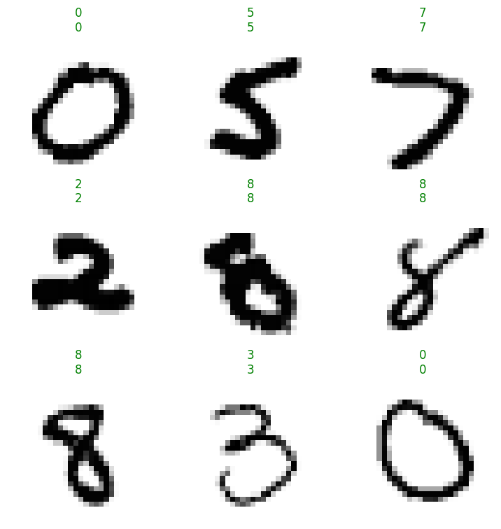 test(acc, .1, le)learn.show_results(shuffle=False, dl=TfmdDL(perturbed_dsets))